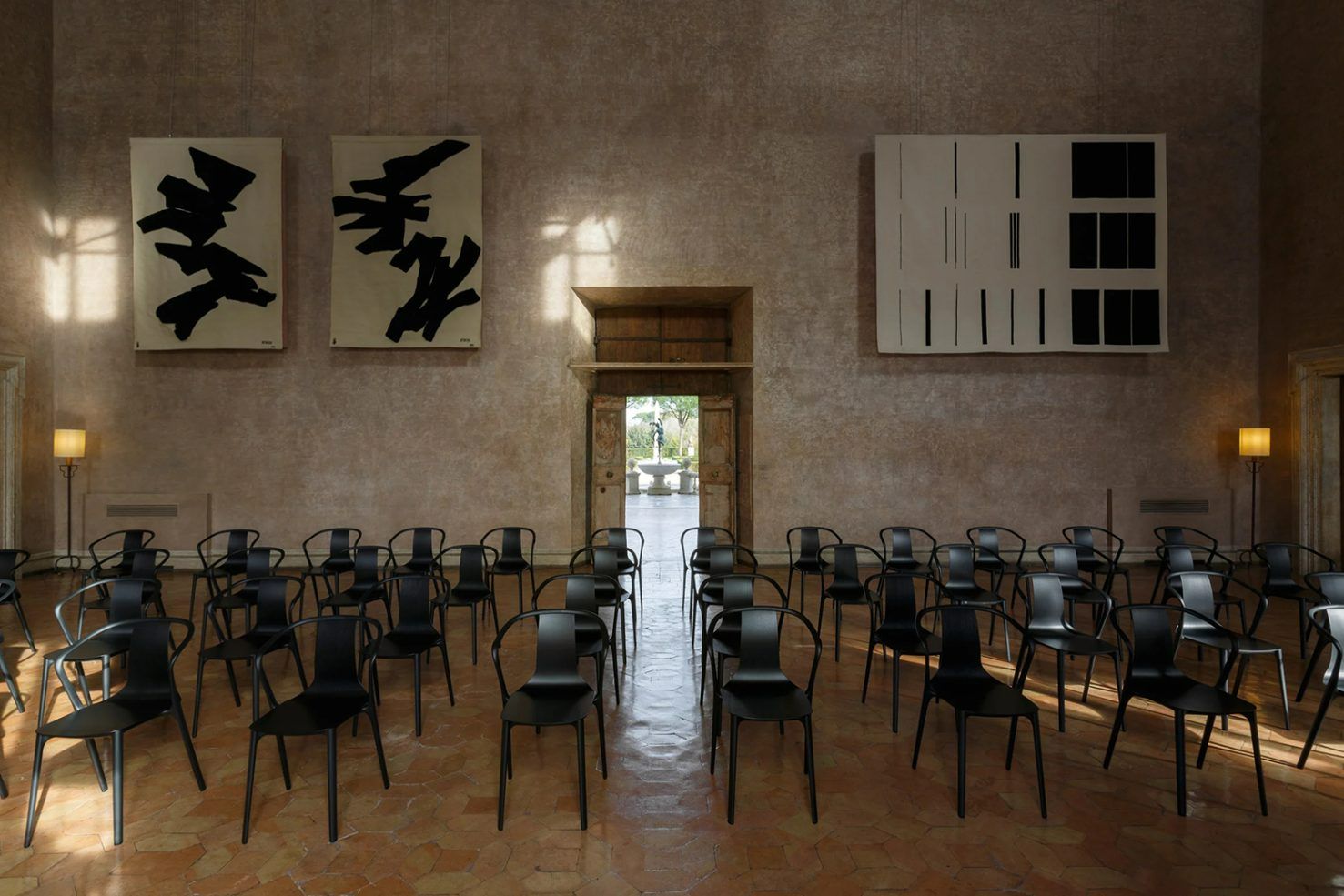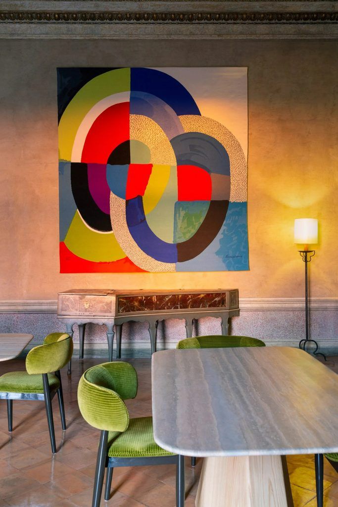 Traditional and contemporary continue to coexist in harmony on the walls, with new tapestries — predominantly created by female artists — joining the heritage hangings. Artwork by the likes of Louise Bourgeois, Sheila Hicks, Aurelie Nemours, Alicia Penalba, and Sonia Delaunay, as well as Raoul Ubac, Edoardo Chillida, and Patrick Corillon can now be found adorning the walls of the Villa Medici. The revamp wasn’t solely aesthetic, with the acoustic element of the heritage building also receiving an upgrade. In partnership with auditory company Devialet, custom acoustic panels have been placed behind certain tapestries in the Grand Salon, improving the sound experience without compromising its visual appeal.