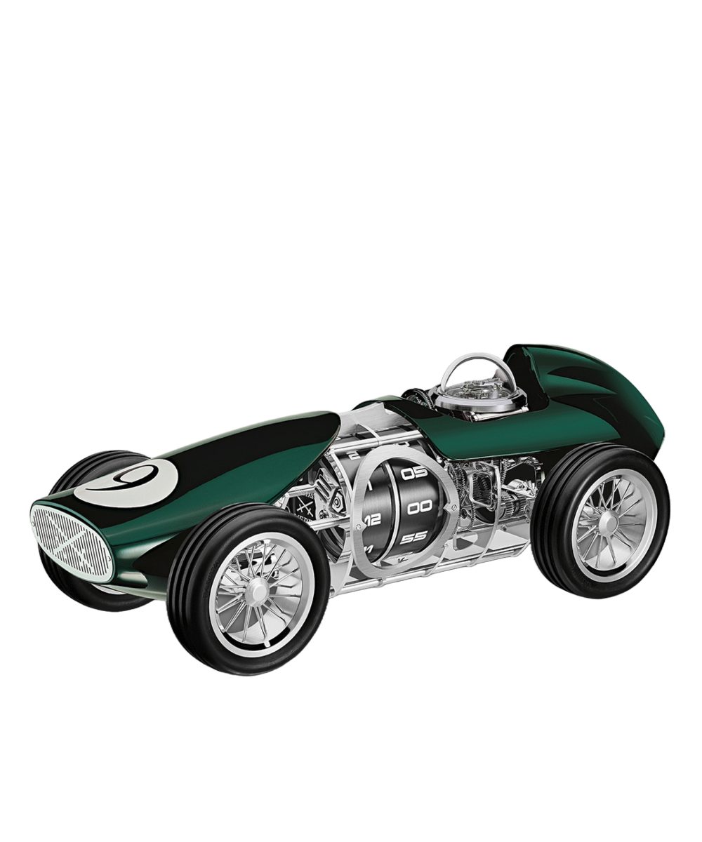 Honestly, who doesn’t need a hand-wound gold-plated desk clock reimagined as a miniature race car?