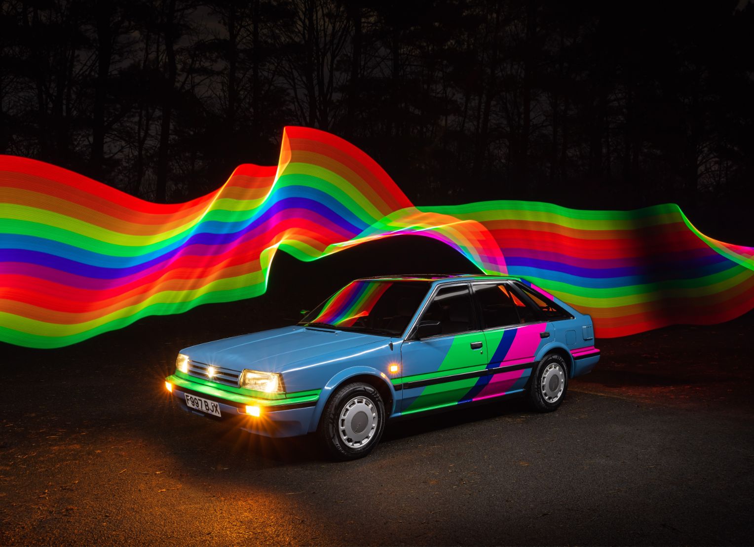 The exterior of the Newbird retains the classic silhouette, adding in LED taillights and an LED backlight on the bonnet badge. Created by Nissan Design Europe, the colourful graphics adorning the Nissan Newbird take their design cues from ‘80s consumer technology with a 21st-century twist. Although the Nissan Newbird is a fun retro restomod, don’t expect it to compete with the big players out there: the Newbird goes from 0-100km/h in 15 seconds and has a full charge of around 209km.