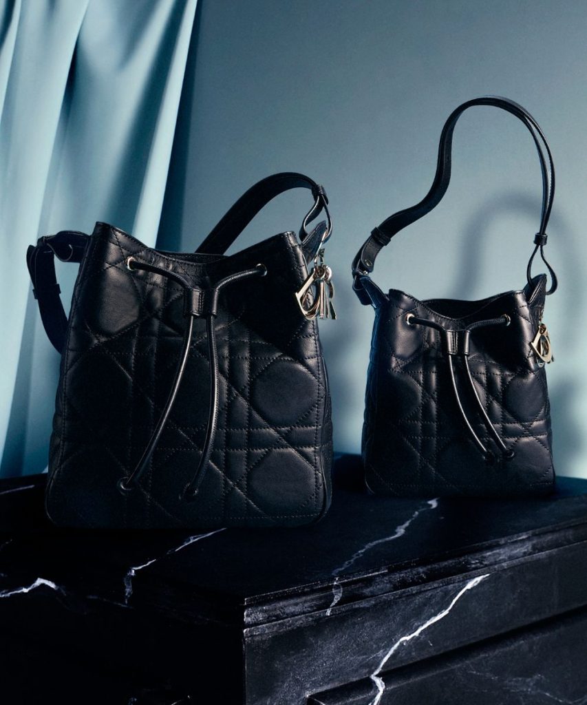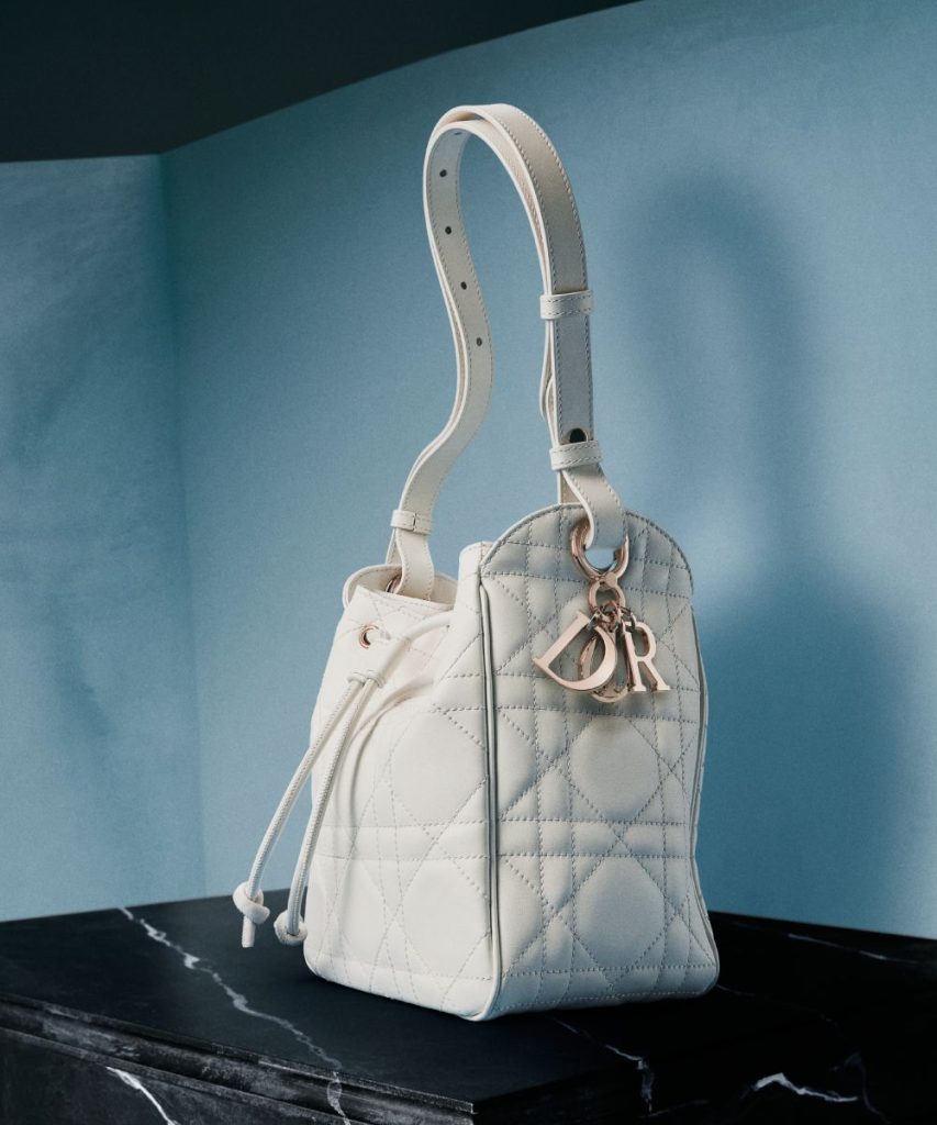 Dior has revealed the latest addition to its handbag lineup, the D-Motion. The new style puts forward a slouchy silhouette executed in soft leather adorned with the macrocannage motif. Boxy yet soft, it’s secured with a drawstring closure and carried with an adjustable strap that allows for shoulder or crossbody wear. The style comes in black, ecru, and powder pink in the small size, and black and pale gold in the medium size.