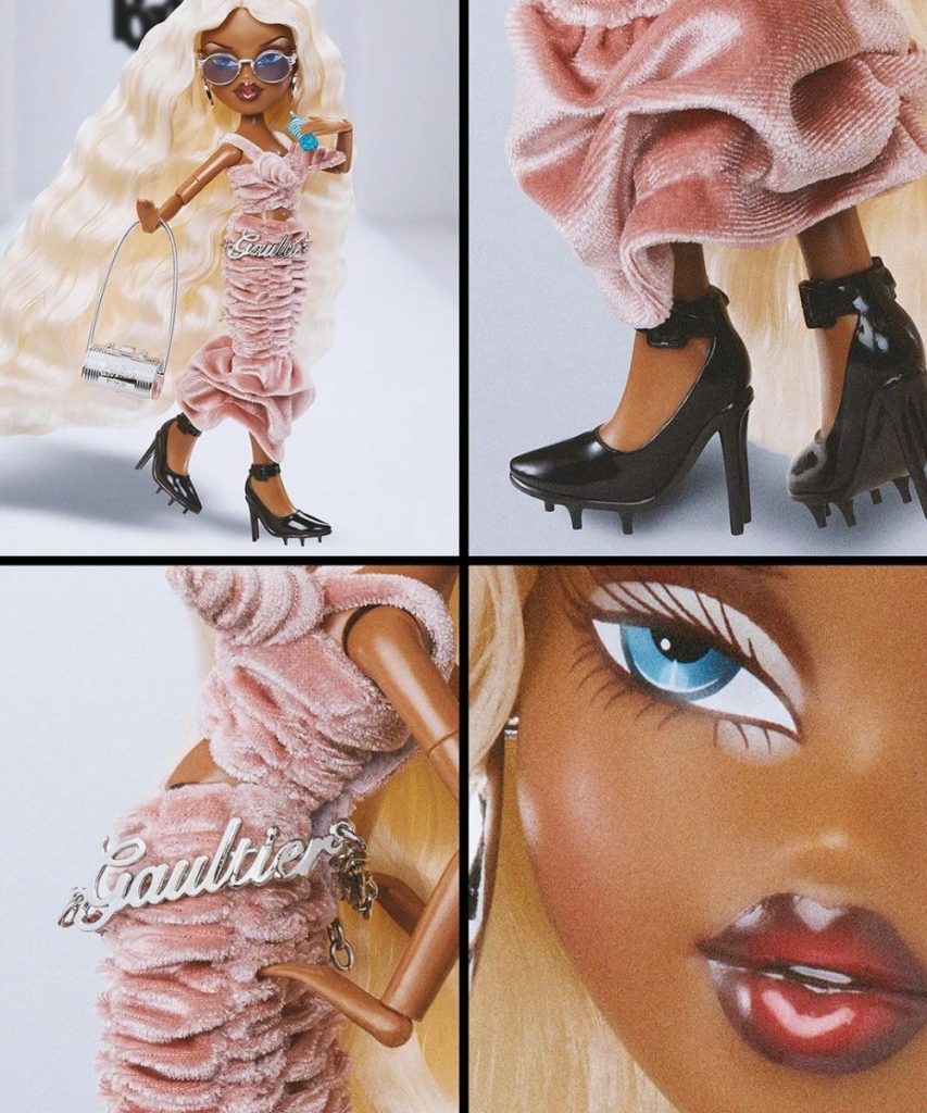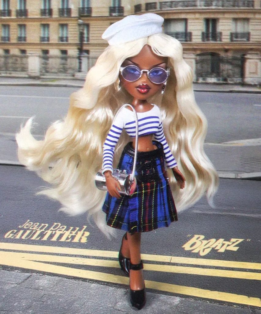 We now know where Jean Paul Gaultier stands in the Bratz vs Barbie conundrum. For the French designer, it’s big head energy all the way, with Jean Paul Gaultier collaborating with MGA Entertainment, to design two distinct outfits for Sasha, one of the four core Bratz dolls. The two lewwwkks Gaultier designed for Sasha are a streetstyle-esque tartan midi skirt paired with a marinière striped crop top and a pink ruched velvet conical bra top with a matching pink ruched velvet maxi skirt paired with studded heels.