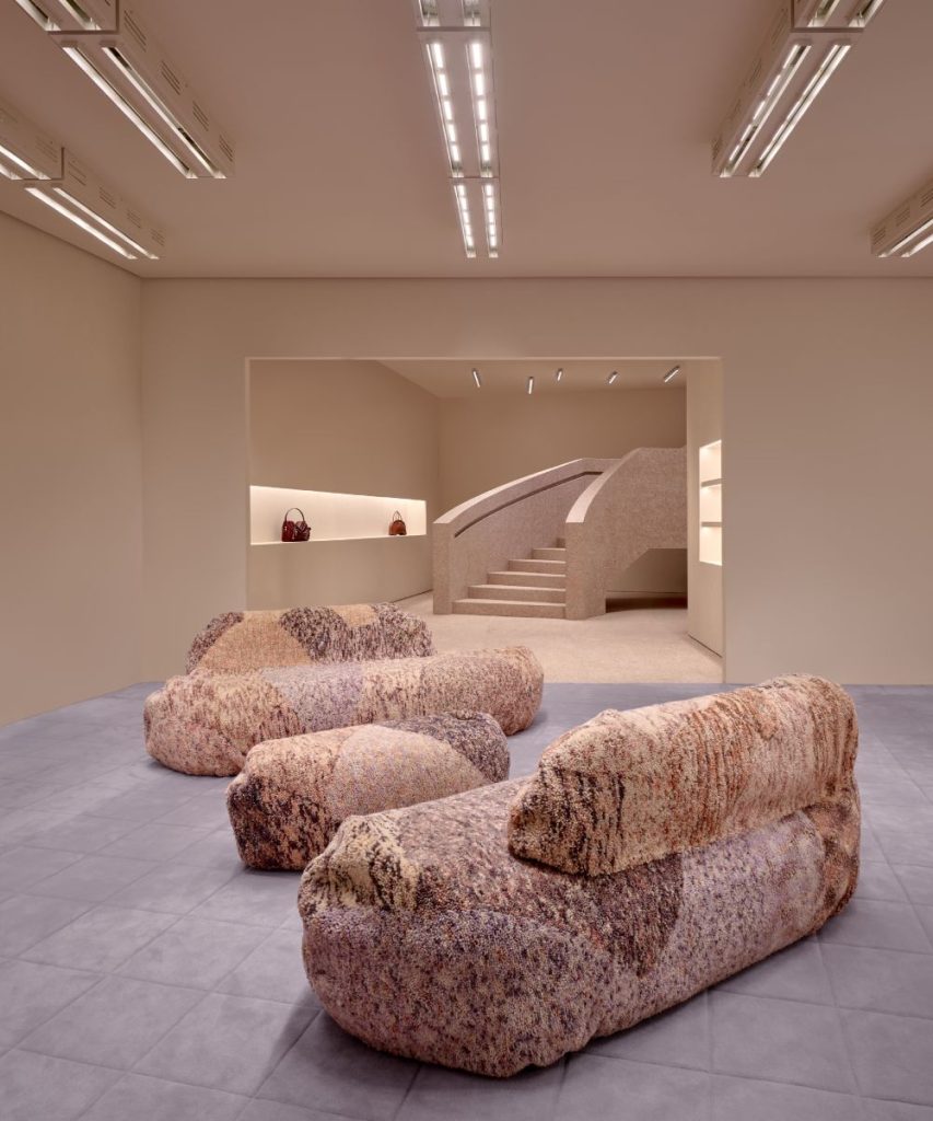 Acne Studios has relocated its Tokyo, Japan flagship to the capital’s Aoyama district, with the move also representing a store expansion. The new outpost unfolds over three floors, each clad in pink granite, reflecting the Swedish fashion house’s signature hue. The result of a collaboration between creative director Jonny Johansson and Swedish architecture studio Halleroed, the new flagship fuses Acne Studio’s recognisable design language with local architectural inspiration, resulting in a store that’s both grounded in place and represents the brand. As with other Acne Studios stores, there’s custom furniture by Max Lamb and lighting by Benoit Lalloz. Inside sit sculptures by Takuro Kuwata that see Acne Studios icons like the Camero bag and trompe-l’œil denim reimagined in the Japanese ceramicist’s signature style.