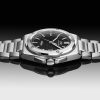 The Raymond Weil Freelancer Diver balances robust sturdy construction with understated elegance. Housed in a 42.5mm stainless steel case, it features a textured black gradient dial that lends a sense of depth to the pared-back timepiece. The applied hour indices feature a luminescent coating to ensure optimum legibility under all lighting conditions, while a drop-shaped window at 6 o’clock reveals a date aperture. The timepiece is presented on a five-link stainless steel bracelet. Its familiar design language and luxury finishes at an affordable price point make it a solid value proposition.