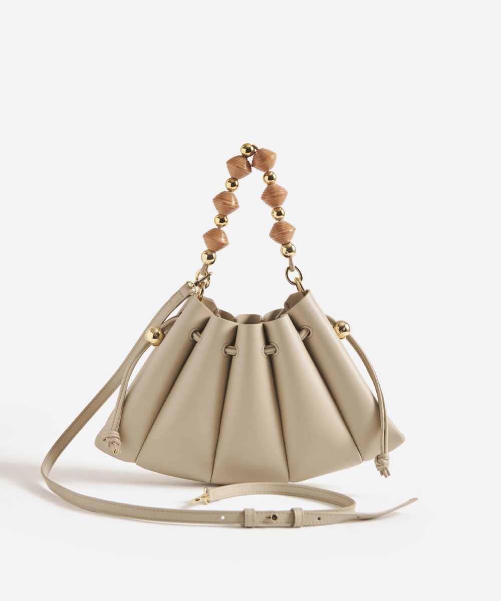 Cruelty-free brand Themoirè has several handbag styles that fit the dumpling bag brief, but we’re particularly drawn to the clean lines of the Dafne. Extended pleats recall meticulously folded gyozas (the kind we can never seem to replicate at home), while the beads on the carry chain are made by artisans from Gulu, Uganda.