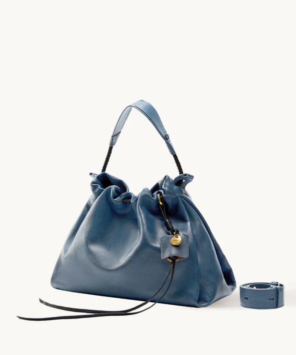 Equally at home on the shoulder as it is nesting under your arm, the Cuyana Dia Bag features a slight upwards curvature and drawstring closure secured with hardware at the front that subtly distinguish it from other dumpling bag styles.