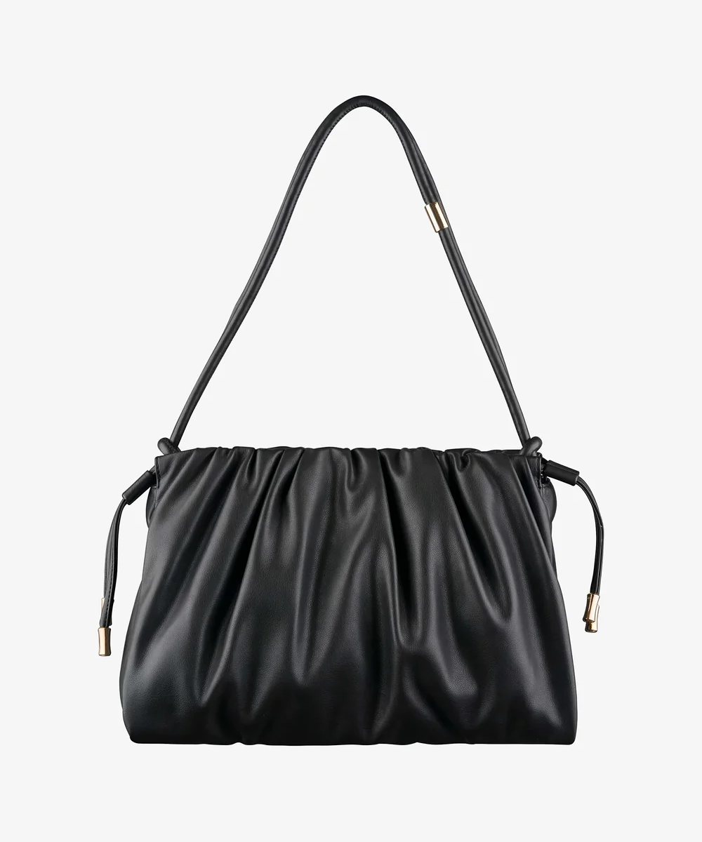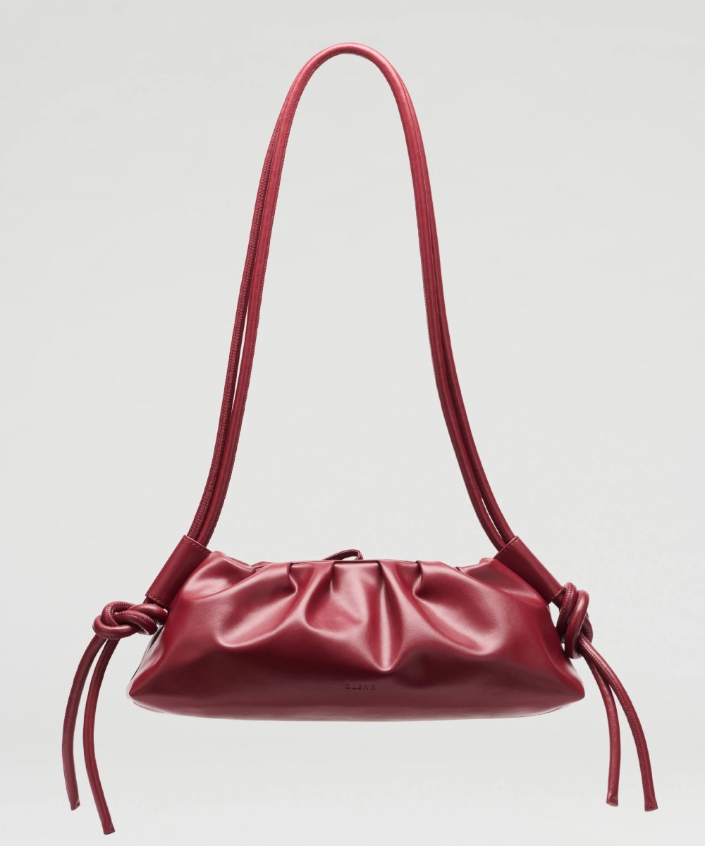 Dumpling meets east-west shoulder bag in the Olend Dumpling Bag. The ruched detailing gives it an undeniably gyoza-esque aesthetic, however what appear to be drawstrings actually form part of the adjustable knotted handle, with the bag employing a zip closure.