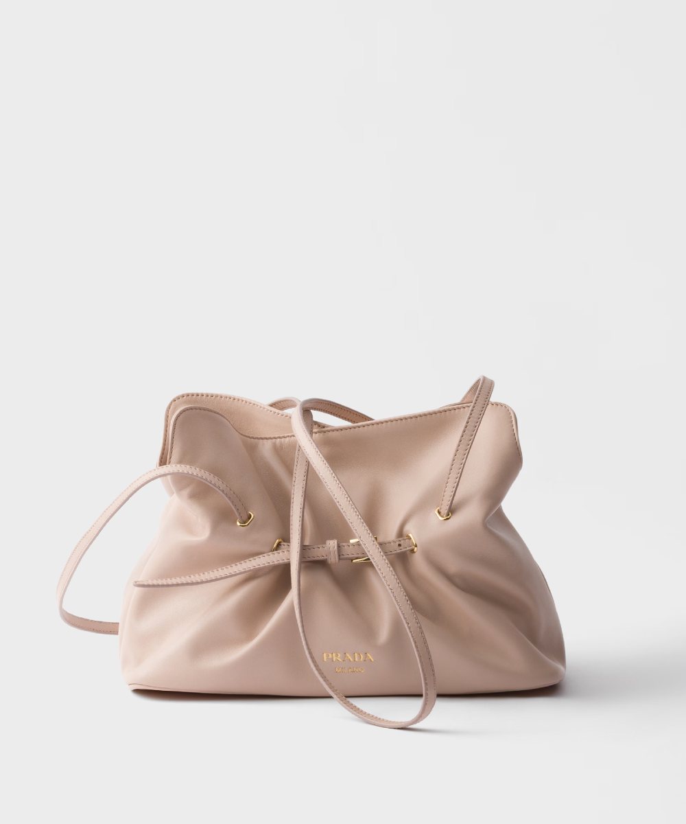 Perhaps named after the non-conformist art movement, the Prada Dada is an aptly unconventional take on the dumpling bag, blending its form with that of the eminently popular belted bag. Here, the drawstring closure is swapped out for a narrow pass-through belt detail that serves to create soft folds and gathers, recalling a dim sum shape.