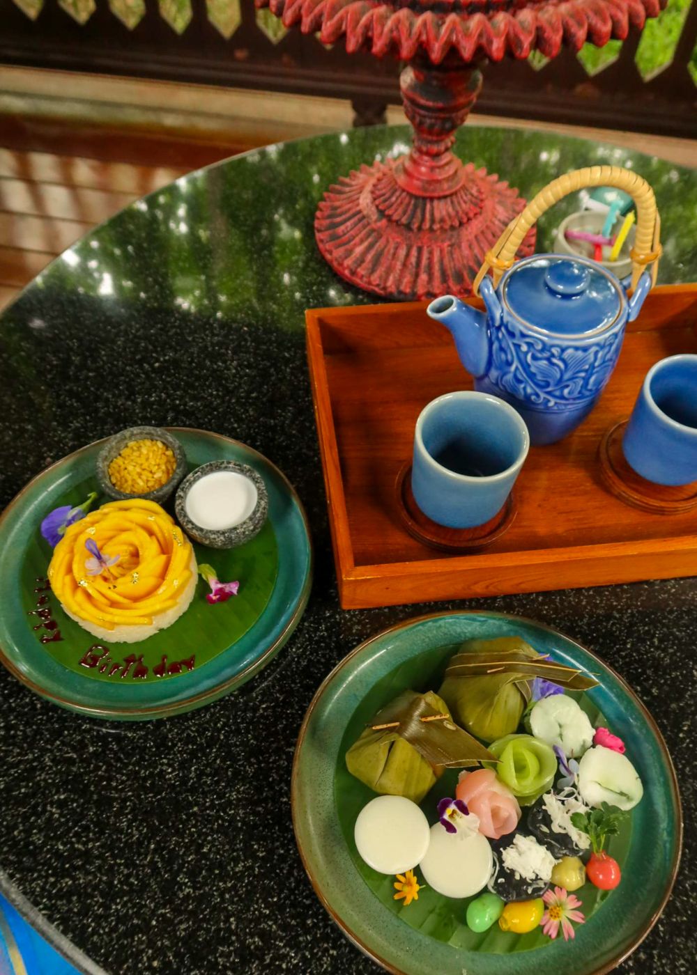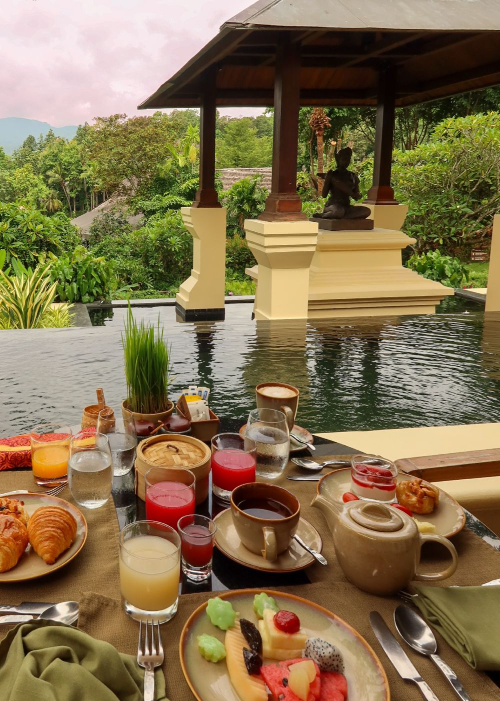 The Four Seasons Chiang Mai has two restaurants, Khao and North, as well as a cooking school, Rim Tai Kitchen, and the laidback Ratree Bar and Lounge on the upper deck of the swimming pool. Khao is the more traditional of the duo; with an emphasis on locality, it celebrates northern Thai flavours, while bringing in elements from the southern, central, and eastern regions as well as from nearby Myanmar. Our dinner at Khao was one of the culinary highlights of our trip to Thailand, with the restaurant deftly catering to our dietary requirements with a dedicated vegetarian menu. The panang tao hu (red curry) successfully translated the rich, spicy flavours of the central Thai specialty to a base protein of tofu, while seemingly simple dishes like tom yum pak (hot and sour clear vegetable soup) and mixed vegetables in sweet and sour sauce were executed with a light touch that placed emphasis on the quality of the produce. Desserts take a similarly localised tone, with dishes like kluay cheum kab i tim kati (banana simmered in syrup and served with coconut sorbet) and khao niew piak lumyai (black sticky rice with longan and coconut) showcase an elevated spin on regional staples.