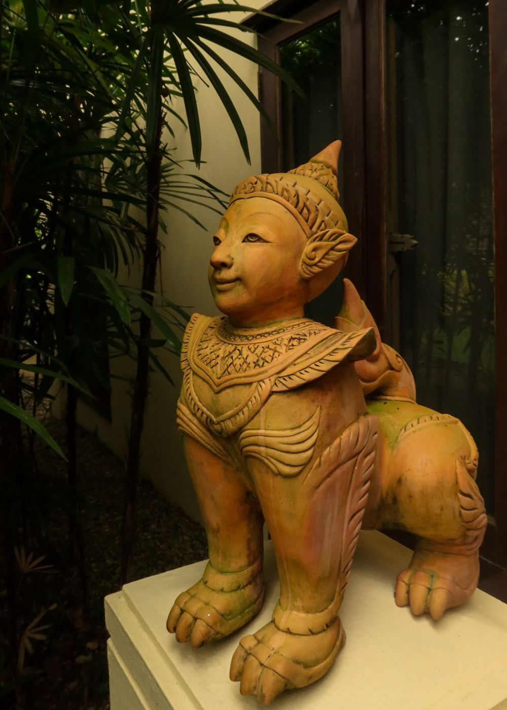 We were hosted within one of the Garden Pavilions, with each of the pavilions decorated in a similar fashion. The design is executed by Bangkok-based Abacus Design and reconciles Lanna style design with regional influences from nearby India, Burma, and China. Guests are greeted with a neotenic statue of Chinthe—a guardian spirit that takes on a lion-dog form, often found in front of Buddhist temples—holding court at the entrance to each pavilion.