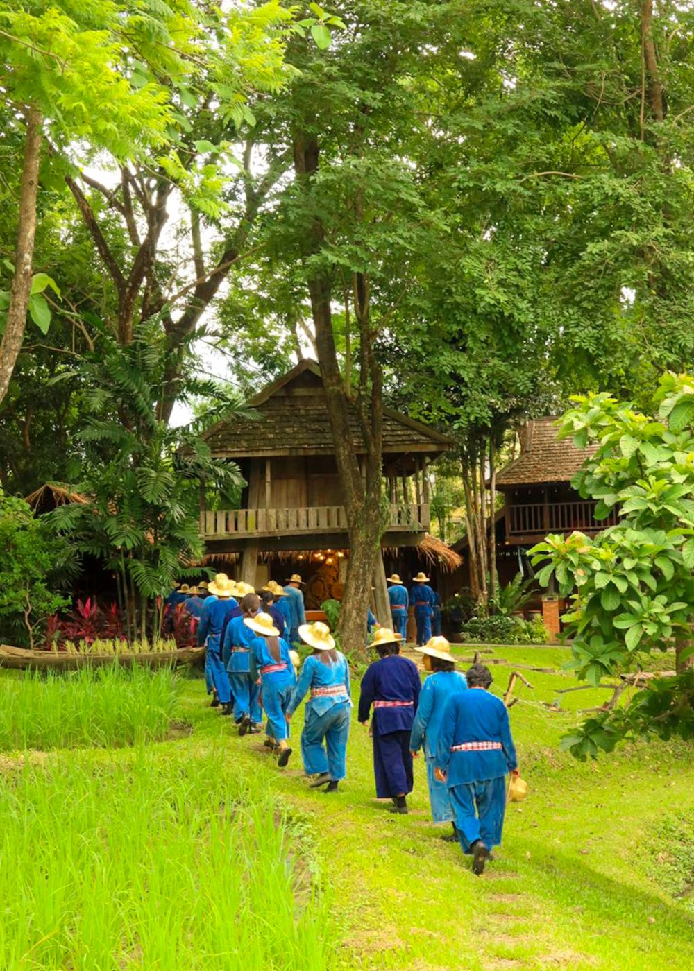 On the periphery of the rice paddy fields situated next to the thriving herb garden supplying the cooking school, the Chaan Baan transports guests back in time. The name refers to the terrace outside a traditional Thai home, with the set of wood-and-bamboo huts built on stilts and designed like a traditional Thai farmer’s quarters. Complete with a traditional kiln and pottery wheel, it sets the scene for the Four Seasons Chiang Mai’s robust cultural programming, which encourages guests to immerse themselves in pastoral life with activities like pottery, indigo dyeing, saa paper making, water buffalo bathing, and rice planting.