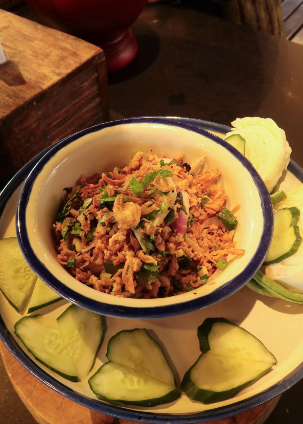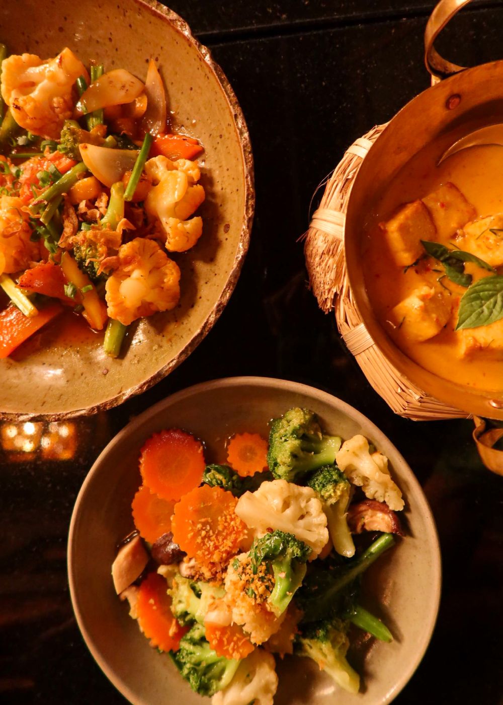 There are a variety of cooking classes on offer (think contemporary, street food, curries, and classics), however the most appealing is the ‘Tour of Thailand’ set, which takes a gustatory journey around the country with dishes from the northern, southern, and central regions (with the menu modified to cater to vegetarians). Three hours and four courses later, we sat down to a lunch of gaeng leung malagor pak (southern style spicy green papaya curry), tom zaab e-san pal (north-eastern style spicy vegetable soup), larb muang (northern style spicy minced tofu salad), and phad thai jae (vegetarian pad thai), each dish made all the more satisfying by the fact that we’d prepared them ourselves.