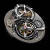 Founded by independent watchmaker Lin Yong Hua, LYH Watches are laden with both technical prowess and distinct character. Designed for music lovers, the LYH Vinyl Record sees a vinyl record player recreated atop the dial, complete with a tonearm surfing the record plate that houses the hours and minutes. An exhibition caseback displays the in-house hand-winding movement, beautifully decorated with musical symbols. Other key releases include the Dragonfly Man, which sees the hours and minutes printed on separate rotating concentric discs; and the Wirepuller, a skeletonised timepiece with an in-house dual power movement with a power reserve of three days. His innovative watchmaking has earned Lin Yong Hua membership with the Académie Horlogère des Créateurs Indépendants, which counts the likes of Philippe Dufour, Hajime Asaoka, Svend Andersen, and François-Paul Journe as members.