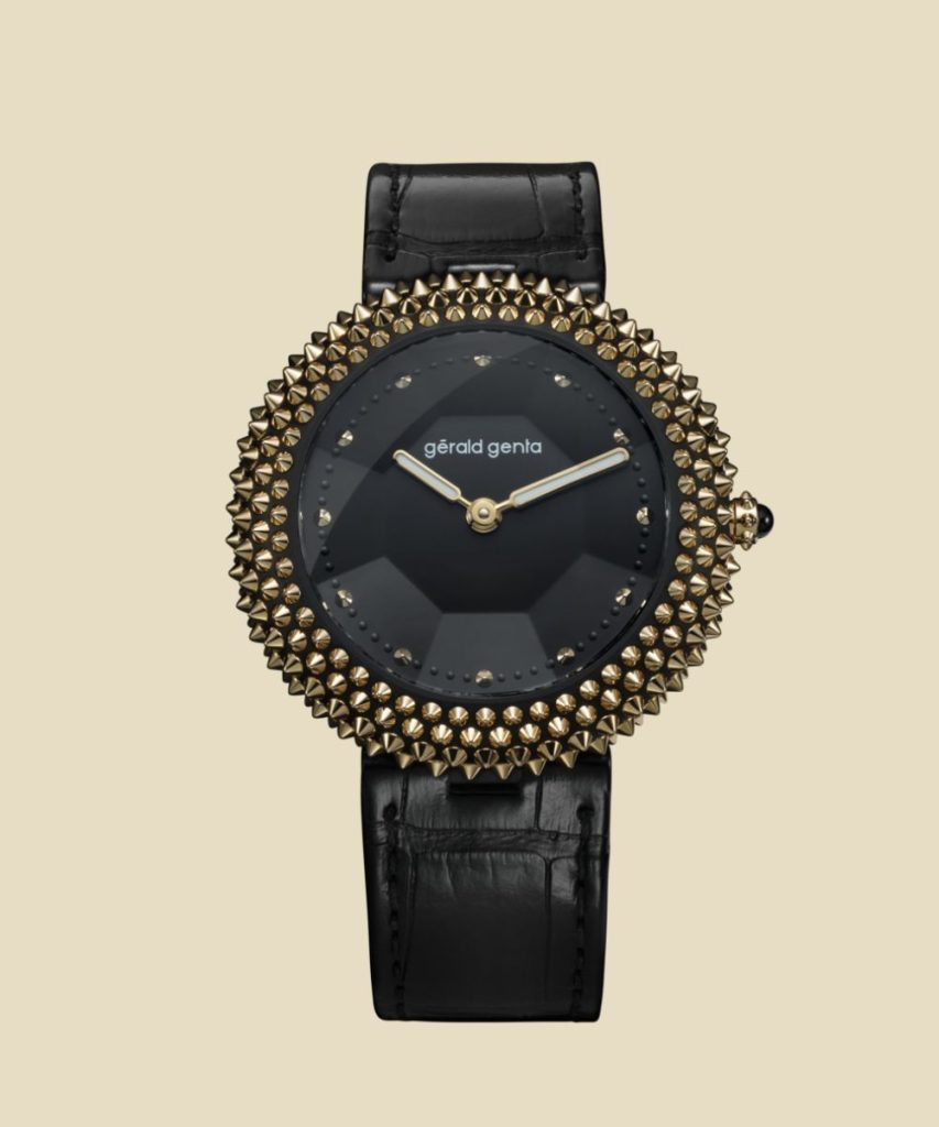 Not afraid to have your watch be the talking point? An undeniable conversation starter, the Gérald Genta Gentissima Oursin is the debut timepiece by the recently relaunched Gérald Genta brand. The idiosyncratic case is derived from a watch Genta sketched while on vacation in Corsica in 1994, which drew inspiration from the spiky form of a sea urchin. Essentially the horological equivalent of Valentino Rockstud heels, the Gérald Genta Gentissima Oursin is crafted from DLC-coated titanium and accented with yellow gold studs, making for a striking force on the wrist. FOr those who truly aren’t afraid to stand out from the crowd, there’s also a limited edition yellow gold iteration with fire opal gems accented with yellow gold pins.