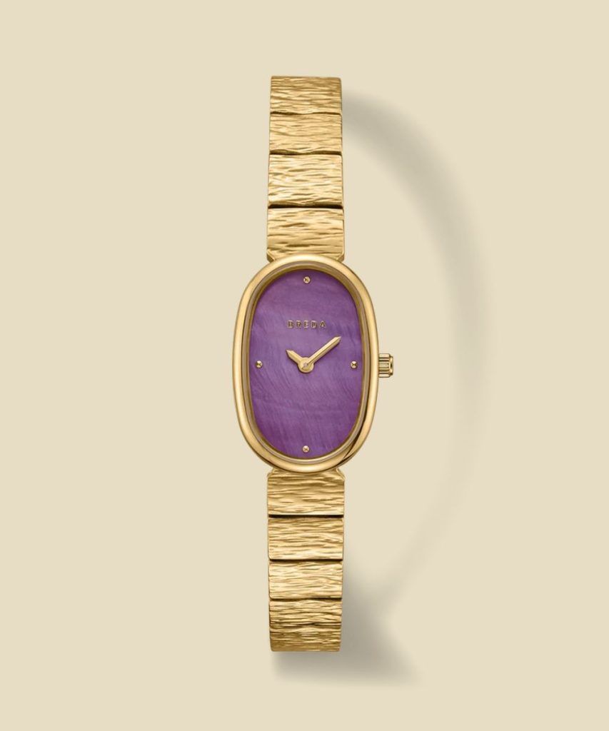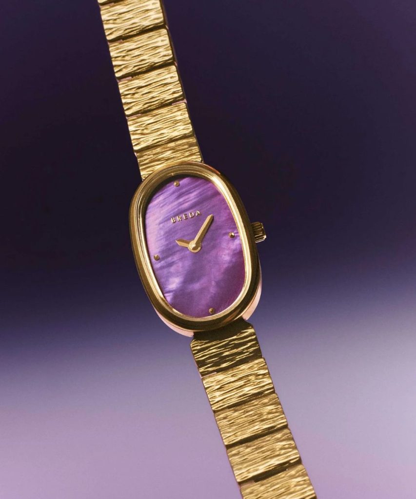 Proving you needn’t boast a bank account balance that resembles a phone number to get a good cocktail watch on your wrist, American watch brand Breda makes high impact watches at affordable prices. The Breda Jane (Revival) sees an oval case shape with a magenta mother-of-pearl dial paired with a unique textured bracelet, with its deep intricate grooves lending it an almost bark-like effect which stands out in a sea of three- and five-link bracelets.