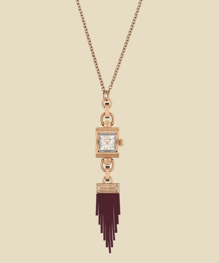 When it comes to a characterful cocktail watch for women, American watch brand Hamilton has it in spades. A criminally underrated timepiece, the Hamilton American Classic Lady Hamilton Necklace is a two-in-one timepiece, able to be worn as both a necklace with a fringed tassel pendant or as a watch on a chain bracelet. Regardless of which style you pick, its art deco charm, vintage style engraved details, dainty proportions, and mother-of-pearl dial make it the quintessential cocktail watch (and necklace!). Best of all? It clocks in at an affordable price point, available for well under $1000USD.