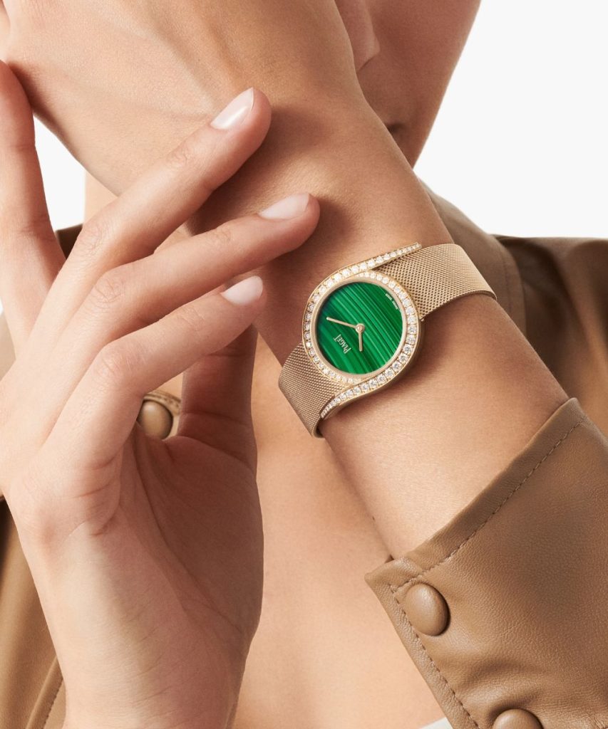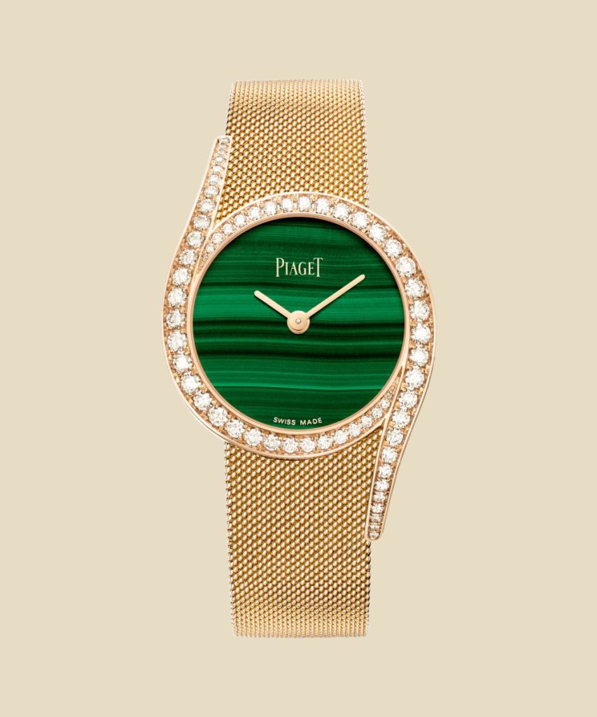 When it comes to the best cocktail watches for women, it’s hard to go wrong with a stone dial watch. And, when it comes to stone dial watches, you can’t go wrong with Piaget. Here, the Swiss manufacture uses natural malachite to lend a pop of colour and interest to its the asymmetrical case of its Limelight Gala watch. The Milanese mesh bracelet and diamond-set bezel contribute to its cocktail watch credentials, while the use of the automatic manufacture calibre 501P1 adds to its horological cred.