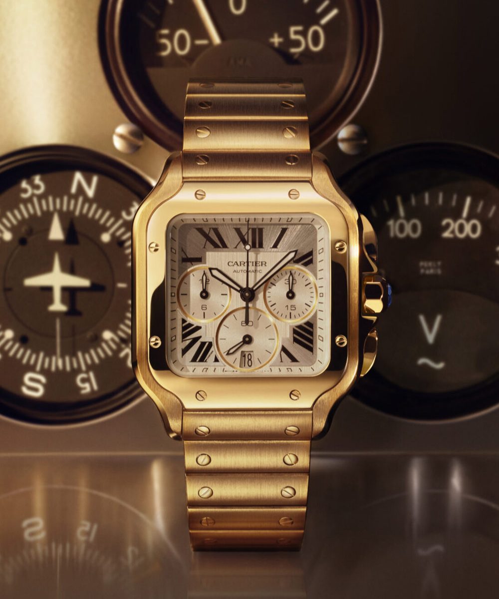 The Santos de Cartier Chronograph updates the 2020 model with a stronger focus on performance and design clarity. A reworked dial sees satin finishes alternated with sunray finishes, with the tricompax subdial layout framed with gold or rhodium rings. It’s available in steel, yellow gold, and two tone, each powered by the automatic manufacture calibre 1904-CH MC.