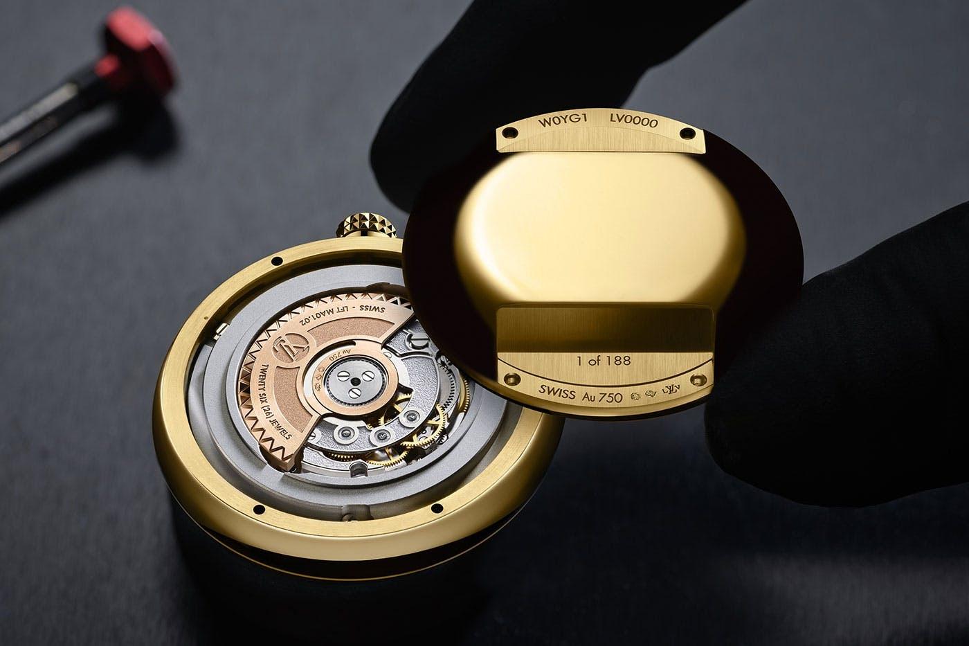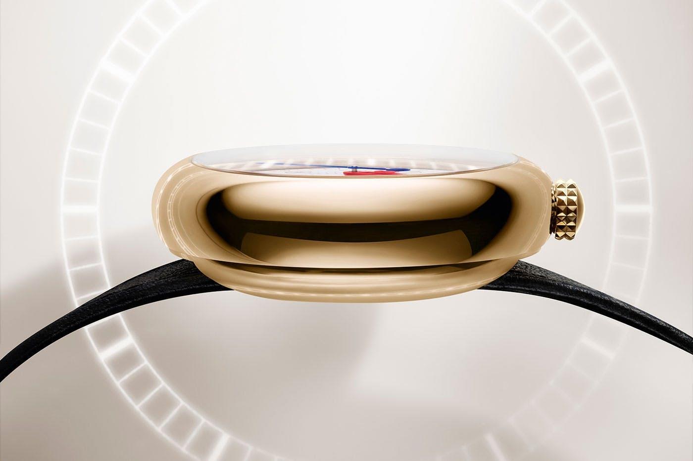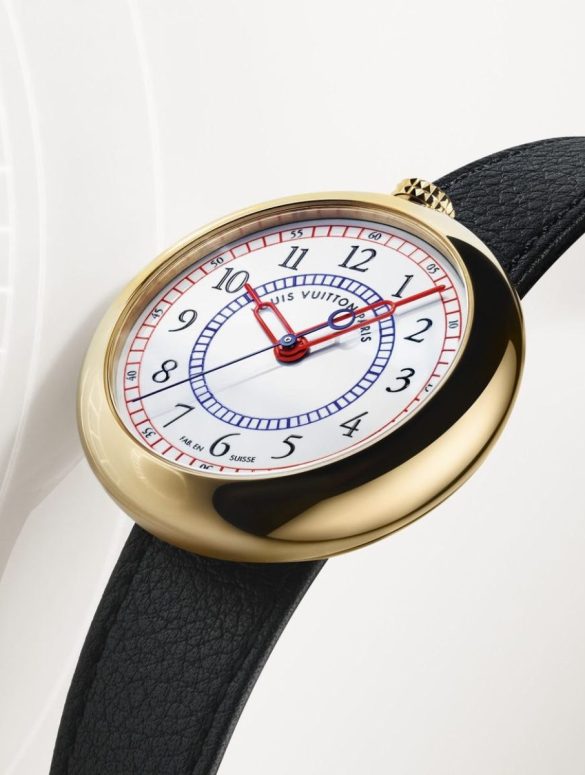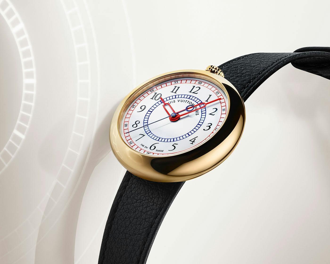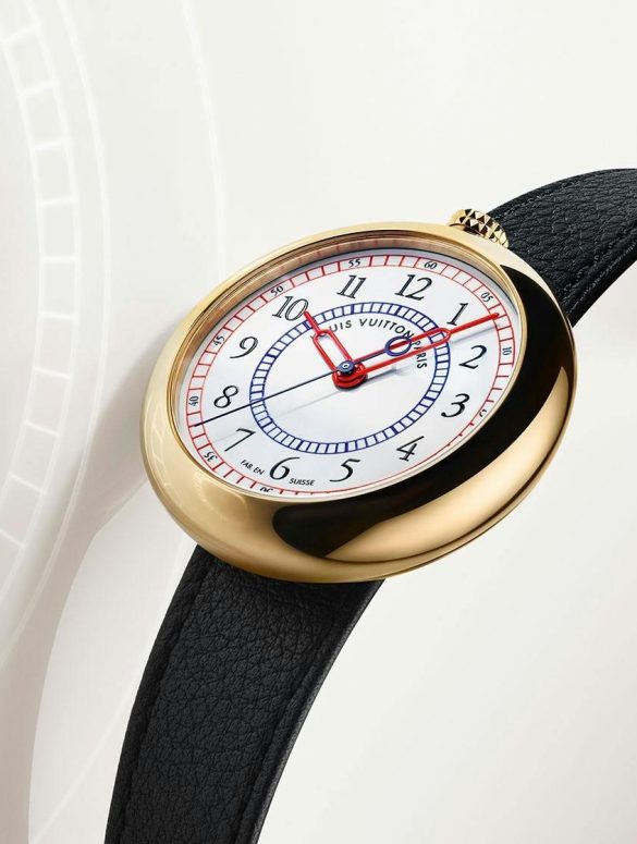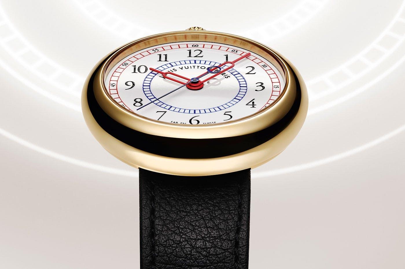 Rather than opting to collaborate with an established watchmaker or have a fashion designer design the watch, Louis Vuitton called upon Italian architect and industrial designer Gae Aulenti, best known for transforming Paris’s Gare d’Orsay train station into the Musée d’Orsay. The resultant timepiece—simply called the LV 1—combined contemporary and traditional design codes, with a lugless pebble-shaped gold case devoid of sharp edges and with the crown positioned in the atypical spot of 12 o’clock.
