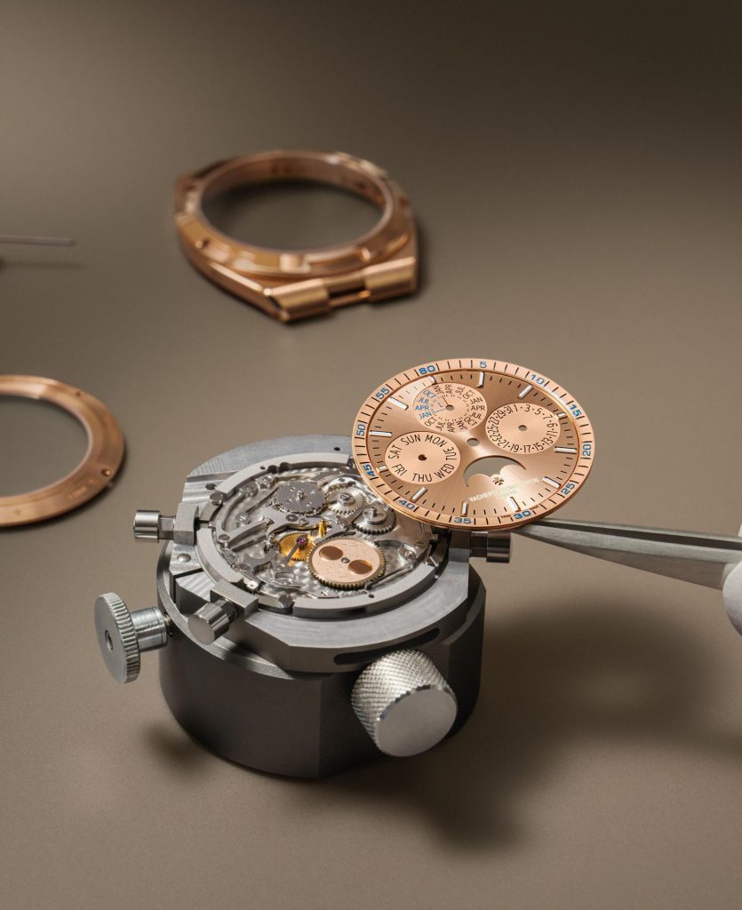 Flip it over and you’ll see the impressively thin (4.05mm, to be precise) calibre 1120 QP/1 at work. Fitted with a gold rotor and hand-finished with striping, chamfering, and perlage, it ensures both references look almost as good from the back as they do dial-side. The automatic movement has a power reserve of 40 hours, meaning it’s a good idea to keep it in a watch winder when not in use to circumvent the arduous process of having to reset a perpetual calendar.