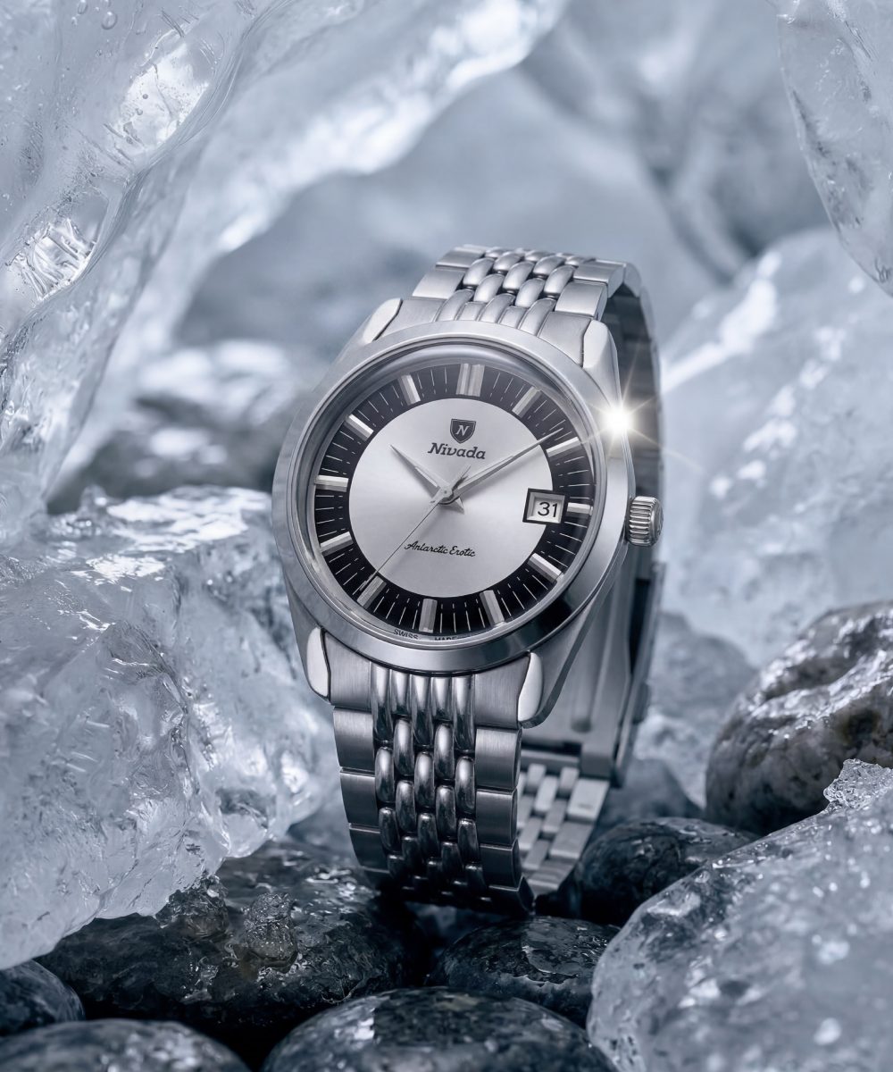 - The Nivada Grenchen Antarctic Erotic is housed within the brand’s 38mm Spider case, crafted from stainless steel and finished with alternating polished and brushed surfaces