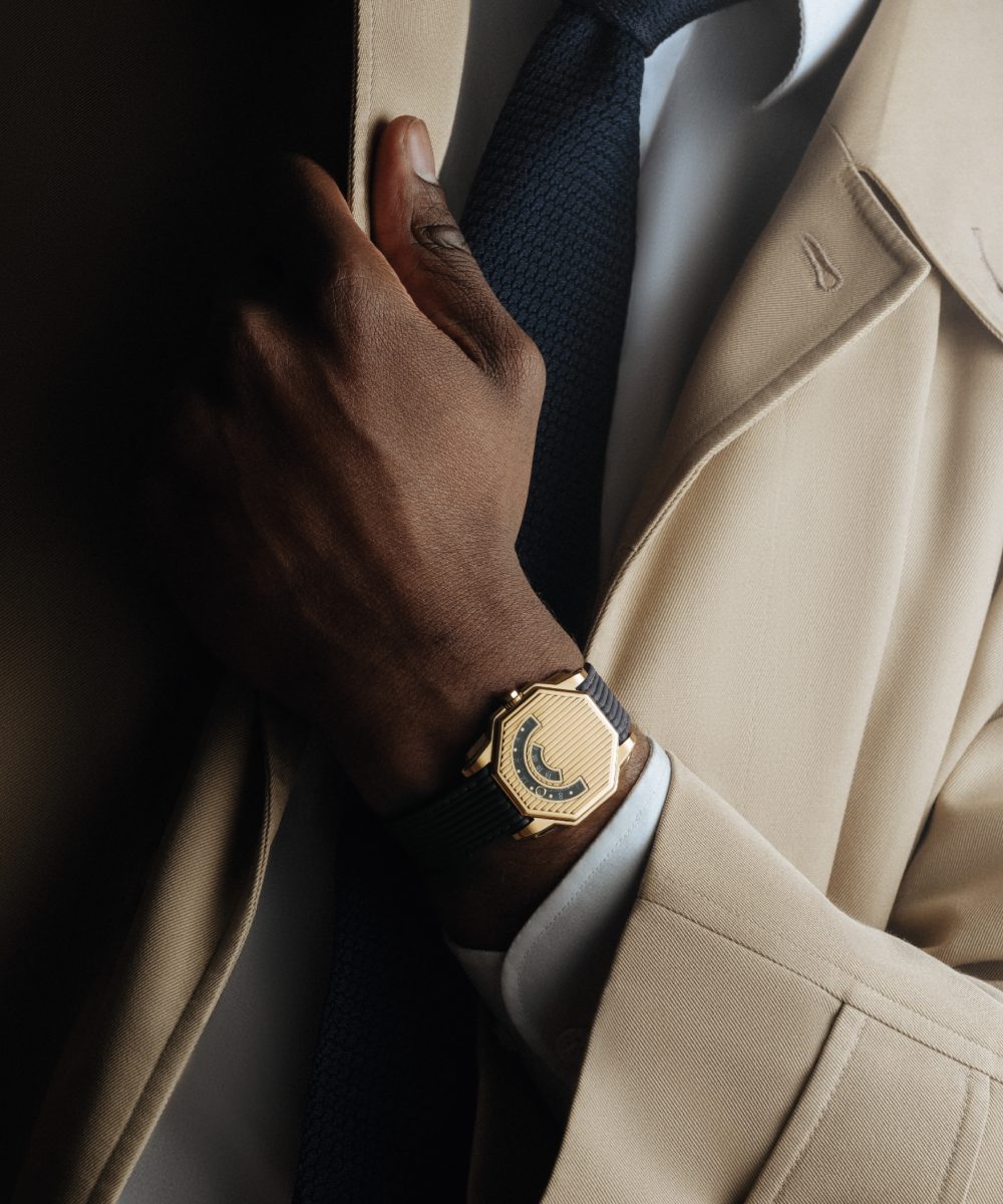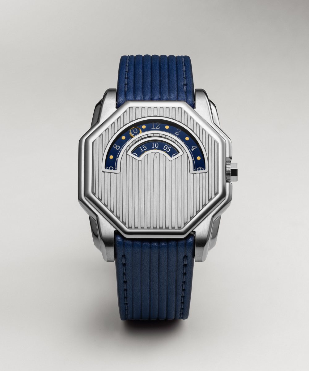 - Housed within the Qatari watch brand’s 37mm octagonal Angles case (available in untreated or gold-plated stainless steel), the closed dial of the timepiece is decorated with vertical gadroons