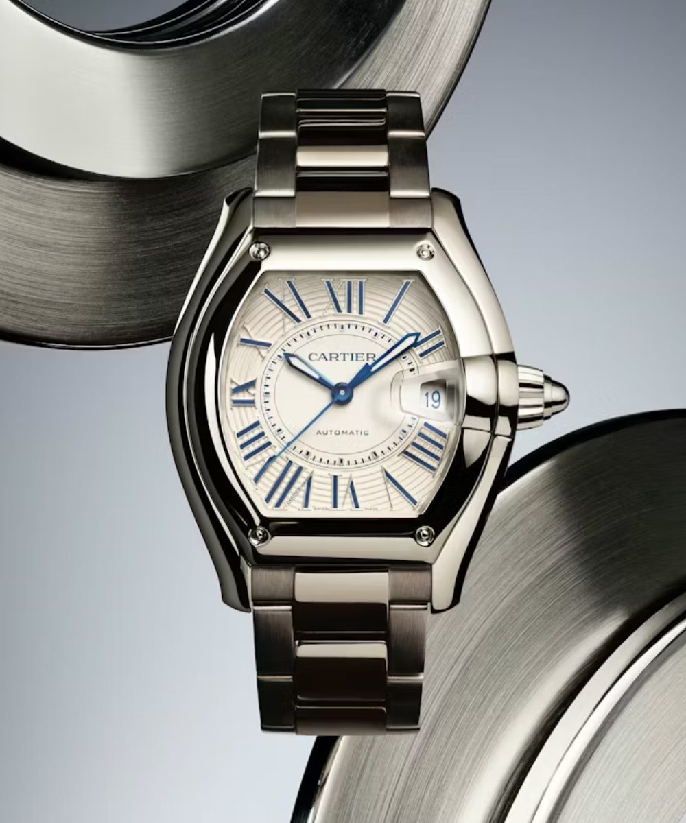 What we think: “Whether a reflection of the predictability of my taste or a testament to the enduring design prowess of the watchmaker of shapes (let’s go with the latter…), there’s really never a time when I’m not coveting a Cartier of some description. In past years, my preferences have veered towards the French watchmaker’s shaped watches, which tend to fall into the dress watch category. However, the revival of the Roadster has me shifting gears (sorry), with the maison proving its singular aesthetic works just as well for the sports watch category. There’s a certain robust charm to the chunky barrel-shaped case paired with the exhaust pipe-style integrated crown flowing through the side of the case and into the date aperture. The full stainless steel is my pick of the bunch.” — John Deckard, publisher