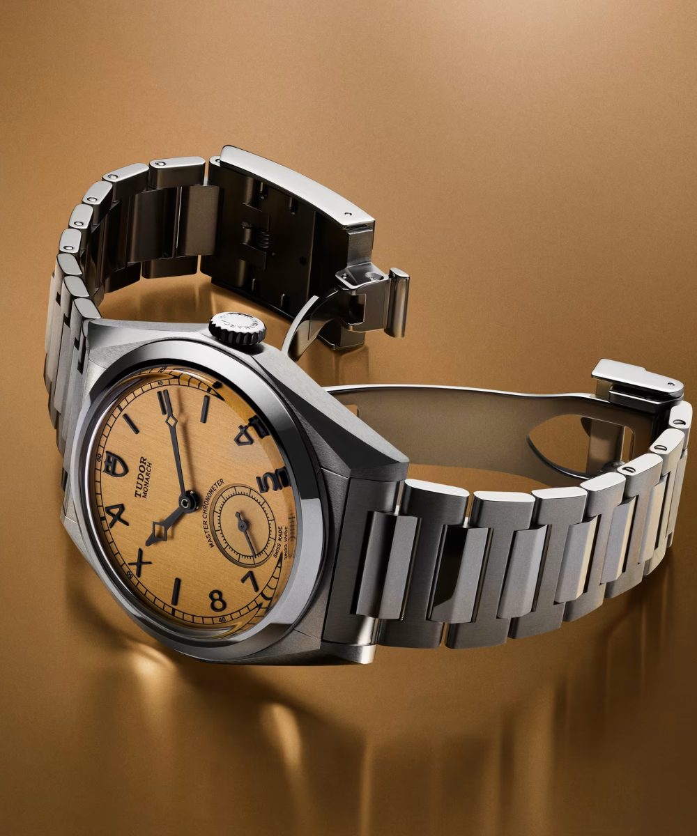 What we think: “Many of Tudor’s models are often compared to big brother Rolex — something it cops flack and gains customers for in equal measure. When it comes to the Black Bay, Ranger, and previous incarnations of the Royal (i.e. the now-defunct Oyster Prince and Oyster Princess) lines, it’s a fair comparison. But the manufacture has proven it has a solid design language in its own right. Released to celebrate Tudor’s 100th anniversary, the Monarch arrives with a faceted case reminiscent of that of Zenith’s Chronomaster Revival but more sharp and angular. The aged champagne-toned dial is an unexpected complement to the California dial layout (half Arabic and half Roman numerals), fusing elements of past and present to create something that looks simultaneously ancient and modern.” — Tanisha Angel, editor