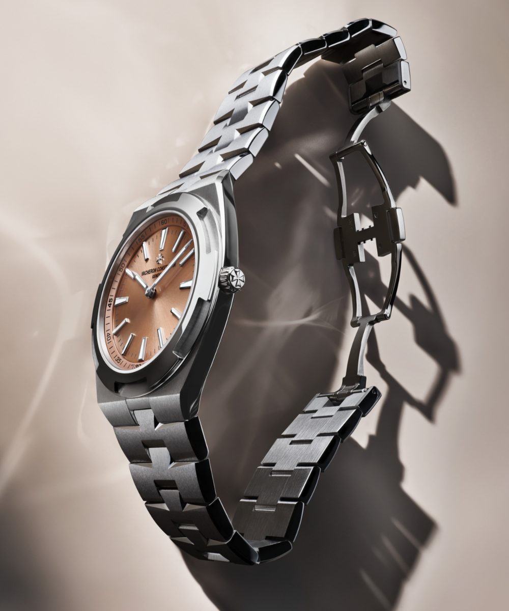 What we think: “Vacheron Constantin spent most of last year releasing increasingly more complicated watches—like the Solaria Ultra Grande Complication, the most complicated wristwatch ever made—and timepieces like the wild La Quête du Temps. It was a fitting way to celebrate 270 years of continuous operation, but this year, the manufacture seems to be focusing on wearability over mechanical mastery. That’s not a dig at the brand — after all, wristwatches are made to be worn. And, the new Overseas Self-Winding Ultra-Thin is no slouch when it comes to mechanics, with the new ultra-thin calibre 2550 measuring just 2.4mm thick (or more rather thin), allowing the manufacture’s flagship chunky integrated bracelet sports watch to take on a svelte appearance. The new calibre makes its debut in a 39.5mm platinum case with an elegant salmon dial. It doesn’t win any ‘skinniest watch ever’ awards (Bulgari already has that covered), but it proves you don’t need to go wafer-thin to improve proportions and feel on the wrist.” — Tanisha Angel, editor