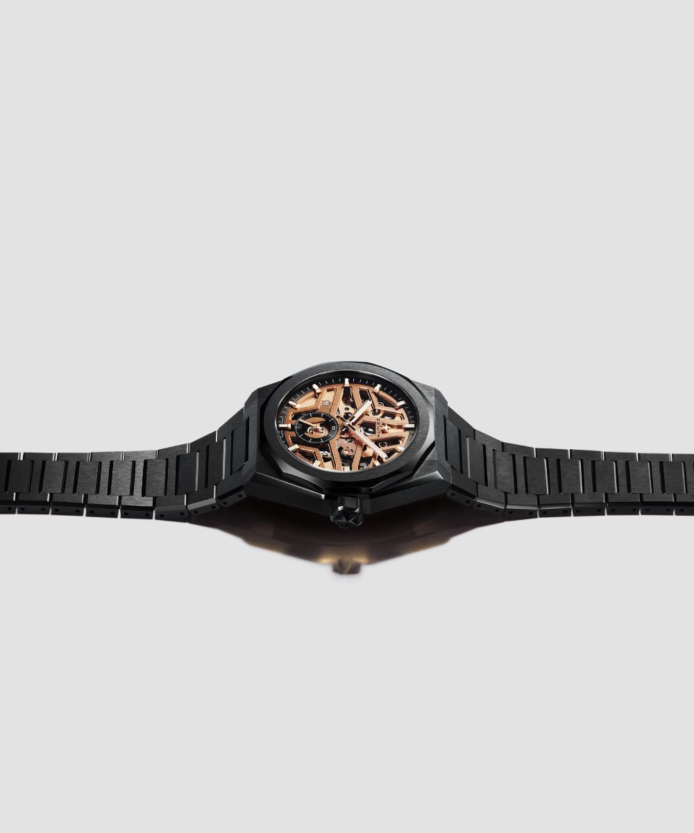 Last year, Zenith marked its 160th anniversary with a quartet of blue-hued releases. Among them, a Defy Skyline Chronograph crafted from blue ceramic, from the case and dodecagonal bezel down to the brushed links on the bracelet. Now, Zenith is putting a dark twist on the lightweight material, with the manufacture’s LVMH Watch Week 2026 releases featuring a blacked out ceramic Defy Skyline Chronograph.